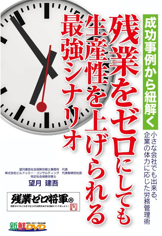 残業ゼロ将軍®望月建吾先生の言わずと知れた代名詞である残業ゼロの労務管理™。働き方改革はもはやこれを中心に進んで行くこと必定です。このDVDは、4年前のリリースされたロングセラーで、現在も売れ行きも好調でときどき品薄にもなります。